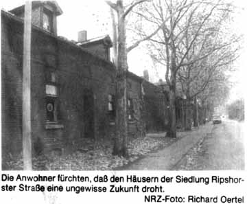 Neue Mitte. "Eddy go home" hatte groß an einer Mauer gegenüber der Siedlung Ripshorster Straße gestanden, als der Brite "Eddy'' Healey sein Centro auf der Lipperheide bauen wollte. Jetzt befürchten die Mitglieder der Mieter-Initiative "Riwetho", daß sie es sind, die gehen müssen. In einem Fax an die Presse fragen die Anwohner von Ripshorster, Werk- und Thomasstraße: "Müssen demnächst 230 Bewohnerinnen den Musterhäuschen des Holzmindeners Investors Krösche weichen ?" Dieter Krösche wiegelt jedoch ab: "Wir wollen keinen Streß mit den Leuten von Riwetho." Der Mann, der neben dem Centro eine ganze "Siedlung" aus Musterhäuschen für mögliche Eigenheim-Interessenten bauen will, verhandelt derzeit mit Thyssen Immobilien über den Ankauf der alten Arbeitersiedlung. Das bestätigt Thyssen Immobilien auf Anfrage. Das Verhandlungsergebnis sei noch völlig offen, erklären beide. ![]() Wie Riwetho schreibt, habe Krösche gegenüber einem Vertreter des Mietervereins bereits angekündig, "daß er fünf Häuser an der Ripshorster Straße abreißen möchte, da diese nicht ins Vermarktungskonzept seiner Musterhäuser passen." Krösche selbst bezeichnete das gestern als noch nicht ausgereifte Gedanken." Wenn es zu einem Ankauf der Siedlung durch ihn kommt, werde er weitere Pläne "gemeinsam mit Riwetho besprechen". Die Initiative selbst - sie geht aus einer Hausbesetzer-Gruppe hervor, die vor Jahren die vernachlässigten Gebäude übernommen und seither Mietverträge bekommen hat - vermißt ihrerseits eine "rechtlich verbindliche Zusage seitens der Stadt, zum Beispiel in Form einer Milieuschutzsatzung". Derzeit scheine "von einer frei finanzierten Modernisierung, von einer Privatisierung bis hin zum Abriß alles möglich", sagen Karl-Heinz Kohnen und Tina Giebels für den Riwetho-Vorstand. Andererseits hat die Kommunalpolitik bereits im Stadtrat deutlich gemacht, daß die "Abrißbirne für die Ripse" nicht in Frage kommt. |